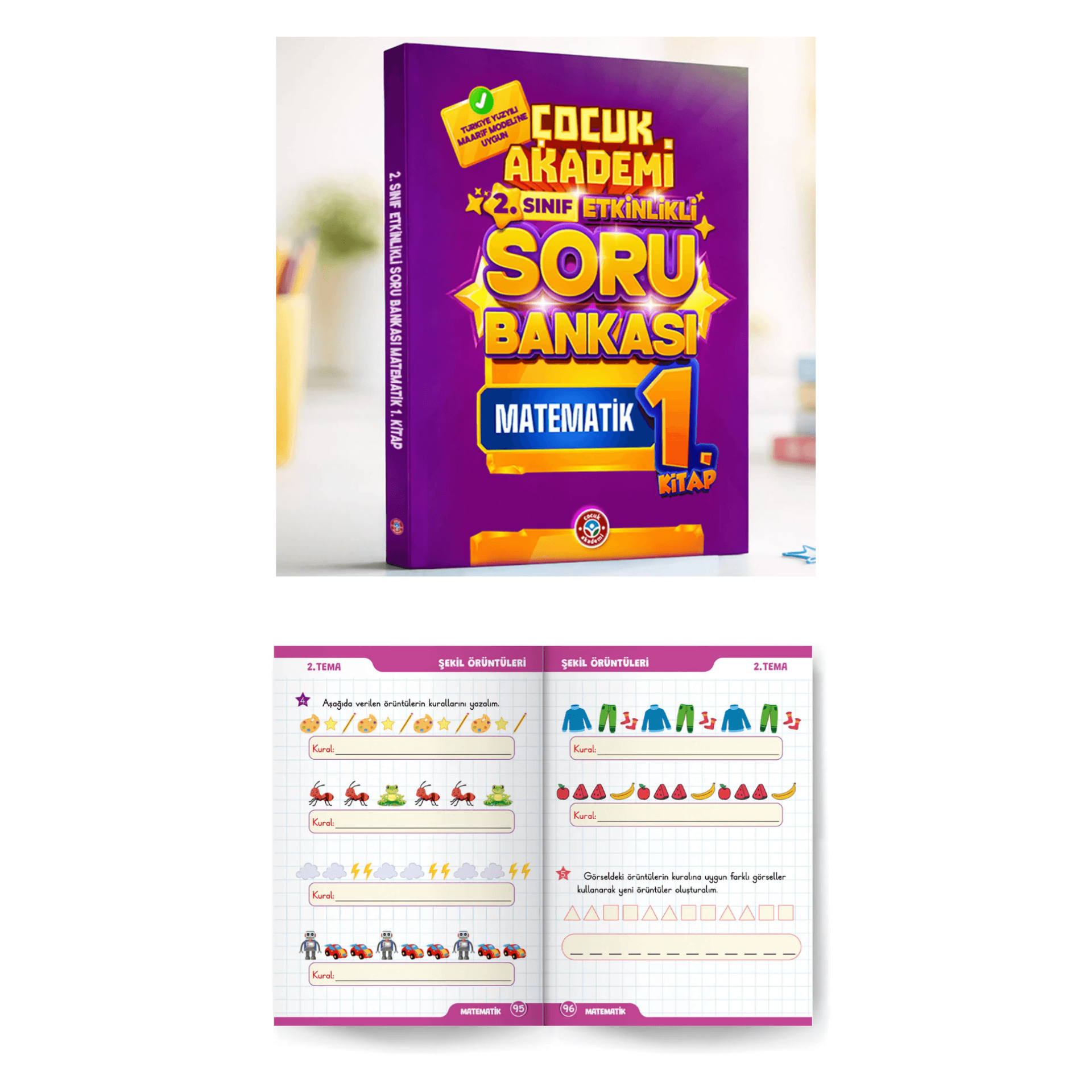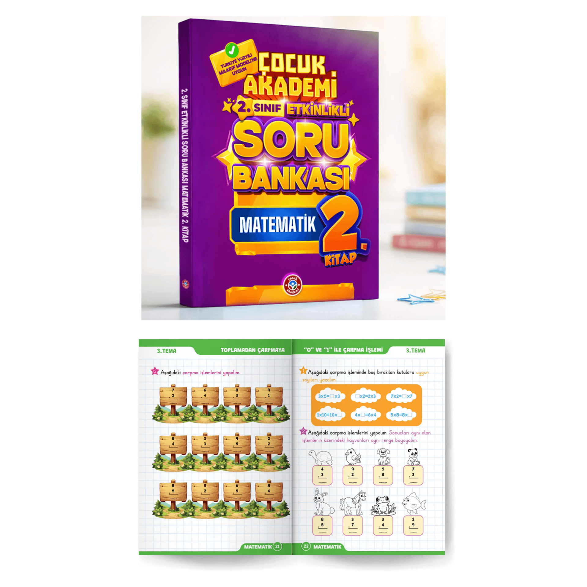 Çocuk Akademi Etkinlikli Soru Bankası Matematik 2. Kitap, ikinci sınıf matematik öğrenme çıktılarının devamını kapsayacak şekilde, öğrencilerinin seviyesine uygun olarak hazırlandı.