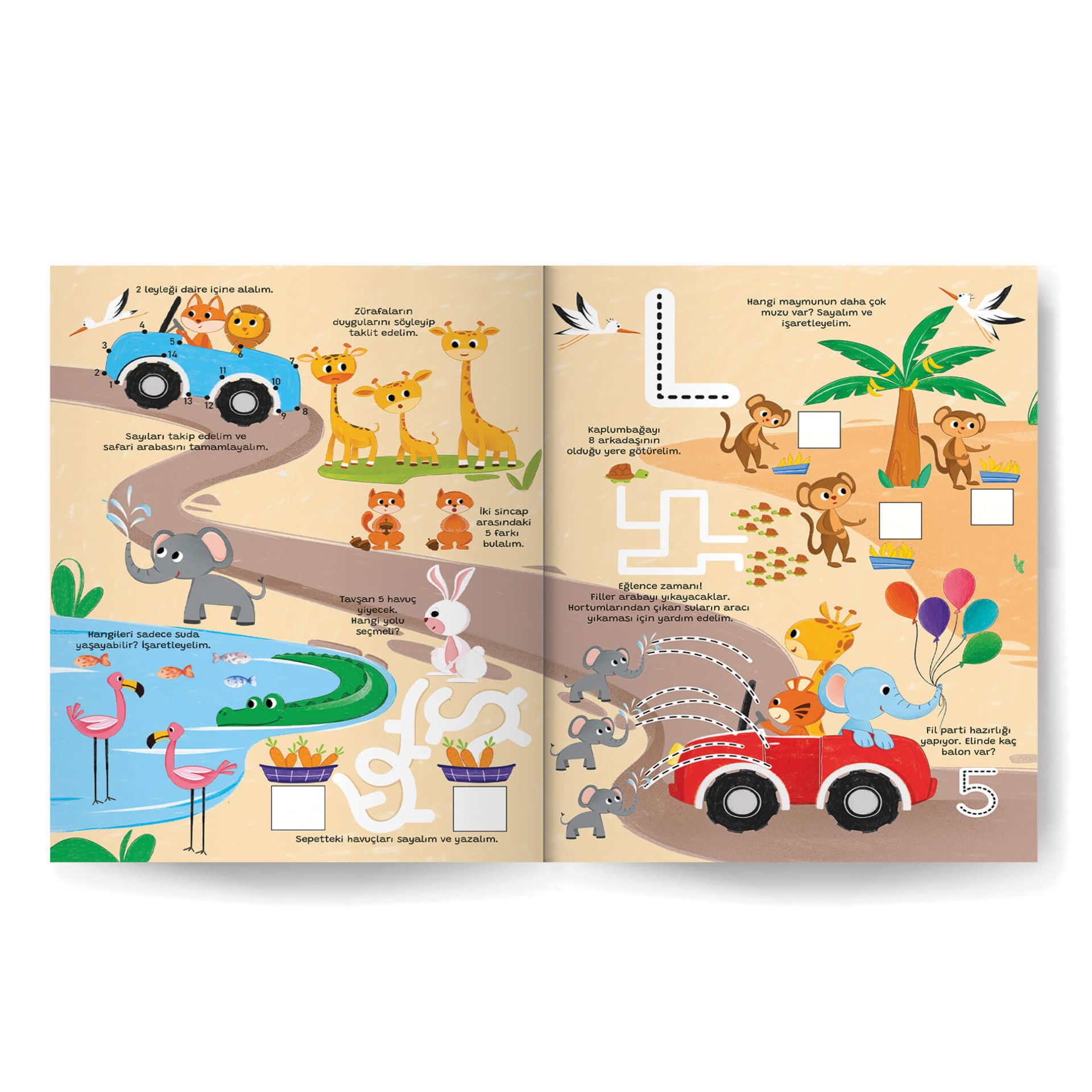 Bu kitap, okul öncesi dönemde sayı öğrenimini eğlenceli hale getirir. Etkinlikler sayesinde çocuklar;