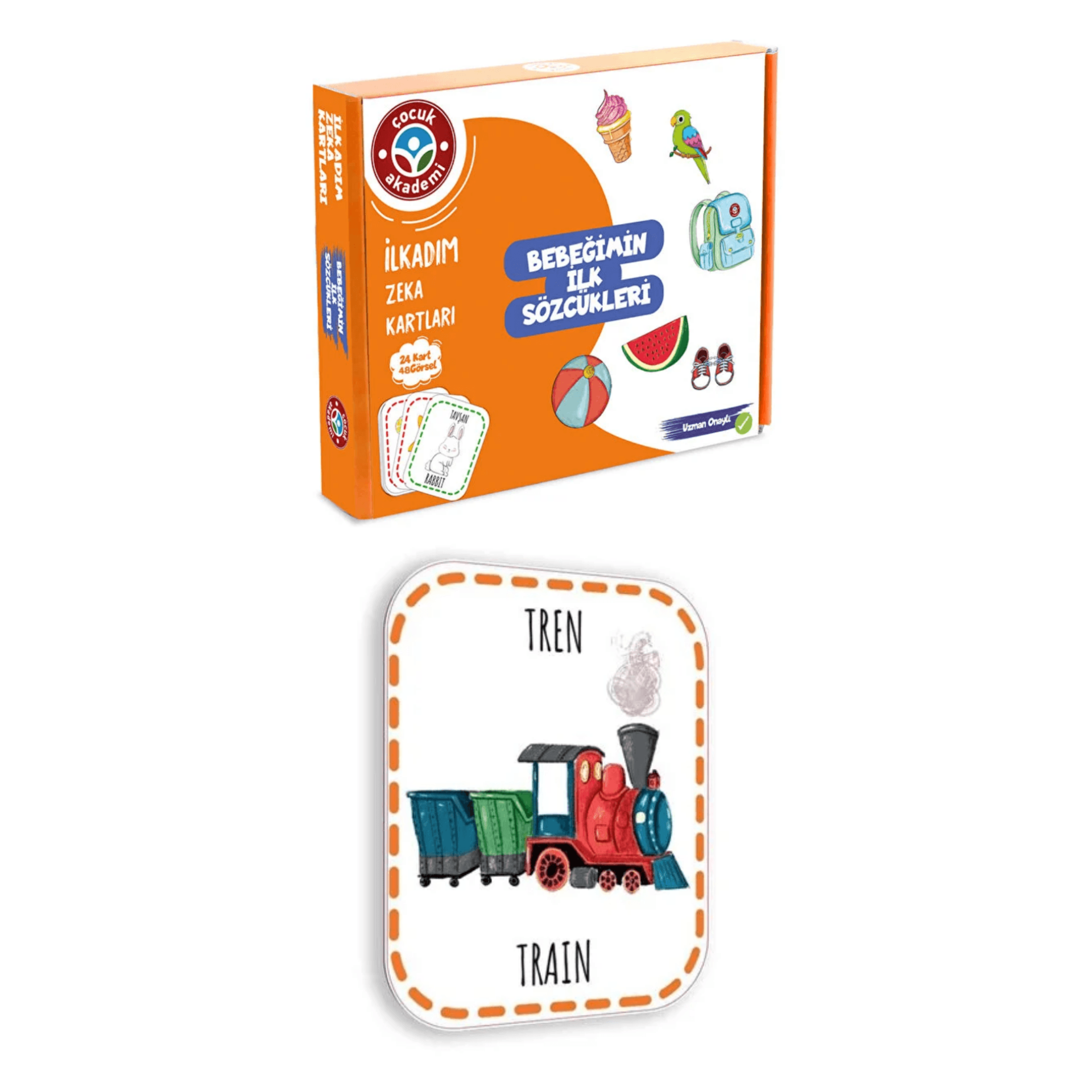 BEBEĞİMİN İLK SÖZCÜKLERİ Çocuk Akademi İlkadım Zeka Kartları uzman psikolog ve çocuk gelişimci eşliğinde hazırlanan 16*13 boyutunda 24 kart 48 renkli görsel içermektedir.