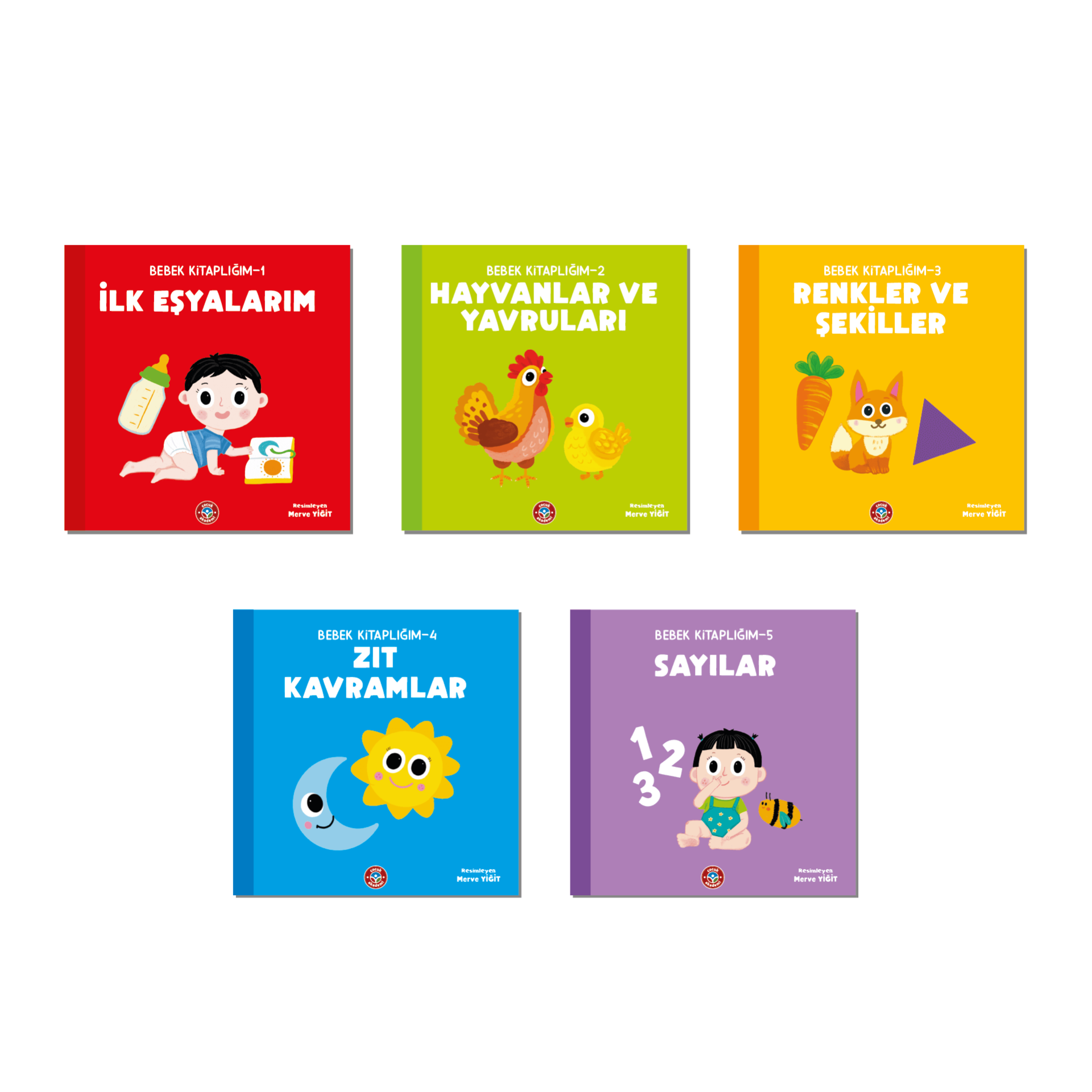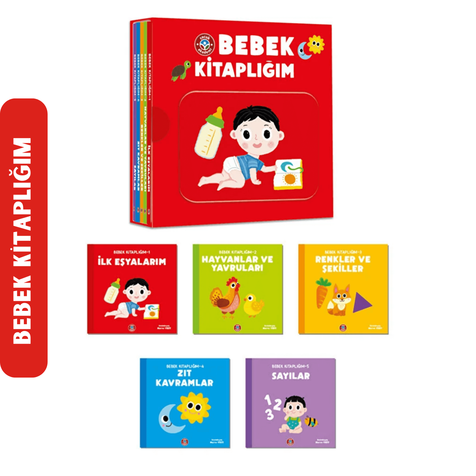 Bebek Kitaplığım, özel tasarım kutusu içerisinde 5 kitap içermektedir.