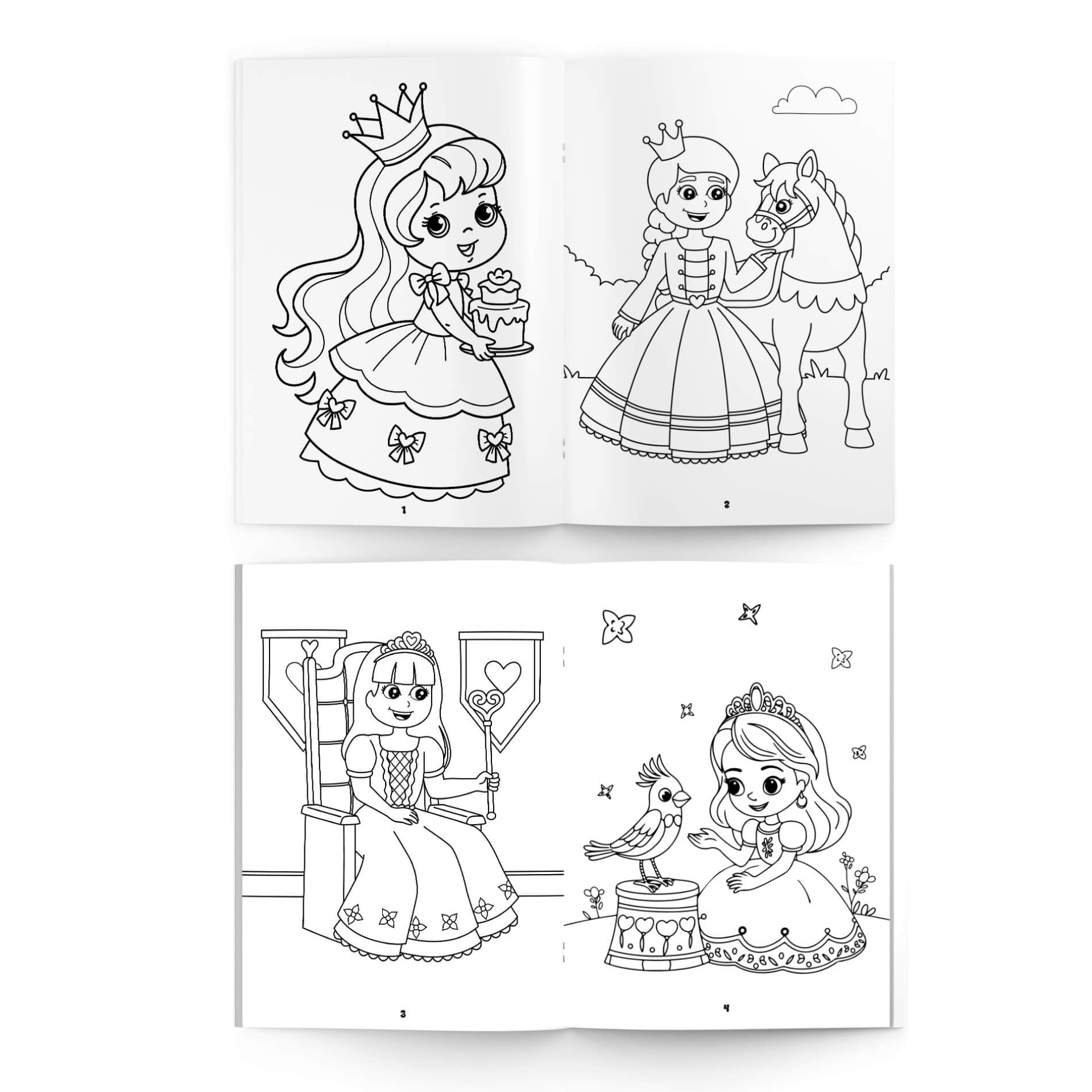 Kitap içinde 16 farklı prenses karakterine ait boyama etkinliği bulunmaktadır. Prenseslerden dostları hayvanlara, arabalardan şatolara kadar çocukların merakla tanıdığı masallar, sevimli resimlerle sunulur. Bu resimleri istediği renge boyayabilir. Her prenses, kendi sahnesi içinde yer alır. Bu sayede çocuklar sadece boyamaz, aynı zamanda masalları tanır ve öğrenir.
