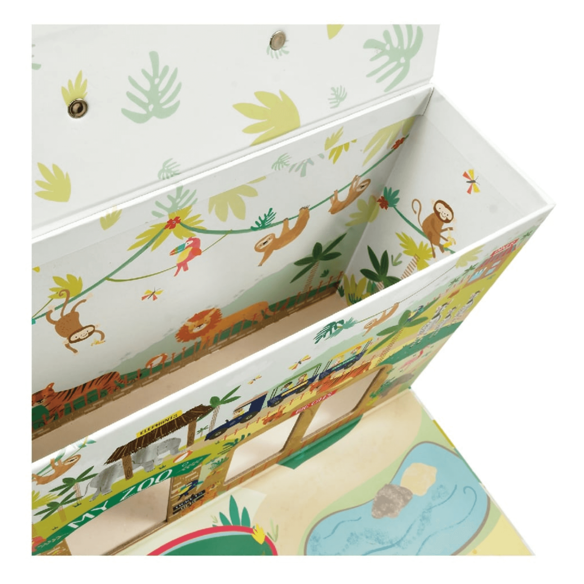 Hangi ufaklık 15 parlak çift taraflı ahşap figür içeren portatif bir oyun kutusu istemez ki? Jungle Oyun Kutusu’nun içinde aslan, kaplan, çita, gergedan ve daha fazlasını içeren hayvanlar, karakterler ve bir bilet masası var, 2 hareketli parçaya sahip tekerlekler üzerinde duran trenden bahsetmiyoruz bile! Kutunun ön tarafı büyülü hayvanat bahçesinin içini ortaya çıkarmak için açılır. Karakterlerinizle saklambaç oynamak için pencereler ve oyun kutunuzu gitmek istediğiniz her yere götürmek için bir taşıma kolu vardır. Oyununuzu evde veya dışarıda, yalnız veya arkadaşlarınızla oynayabilirsiniz.