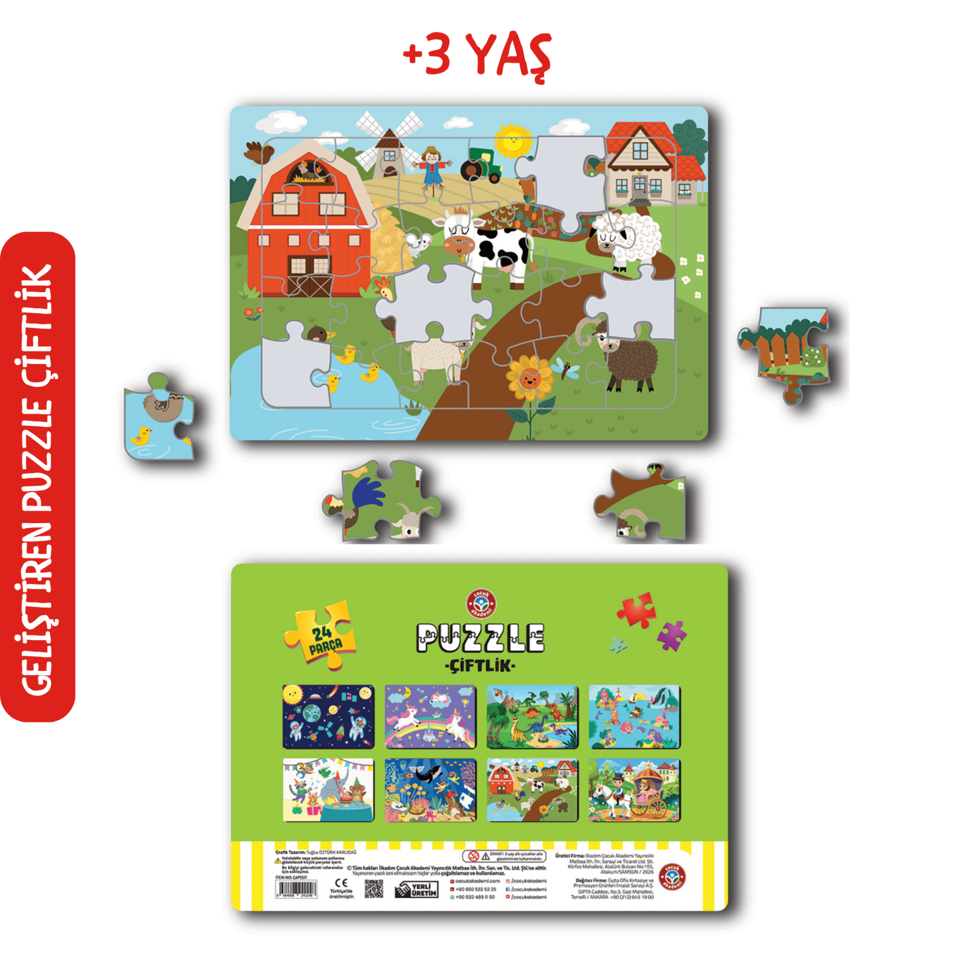 Çocuk Akademi Puzzle Çiftlik, çocukları çiftlik hayatıyla tanıştıran, eğlenceli ve öğretici bir puzzle oyunudur.