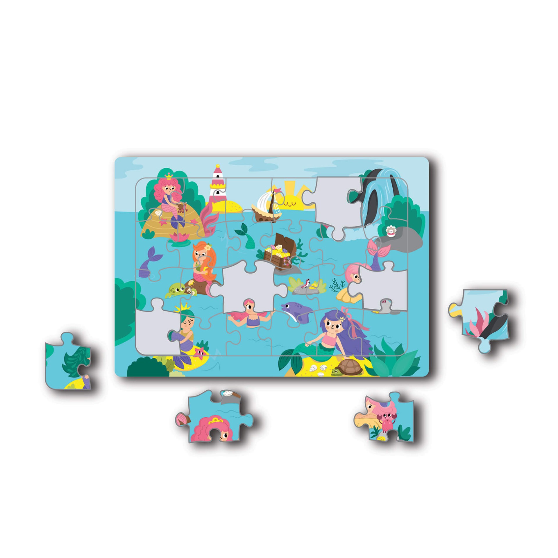 *Parçaları birleştirdikçe deniz kızları temalı sahne yavaş yavaş ortaya çıkar ve oyun keyifli bir öğrenme sürecine dönüşür.