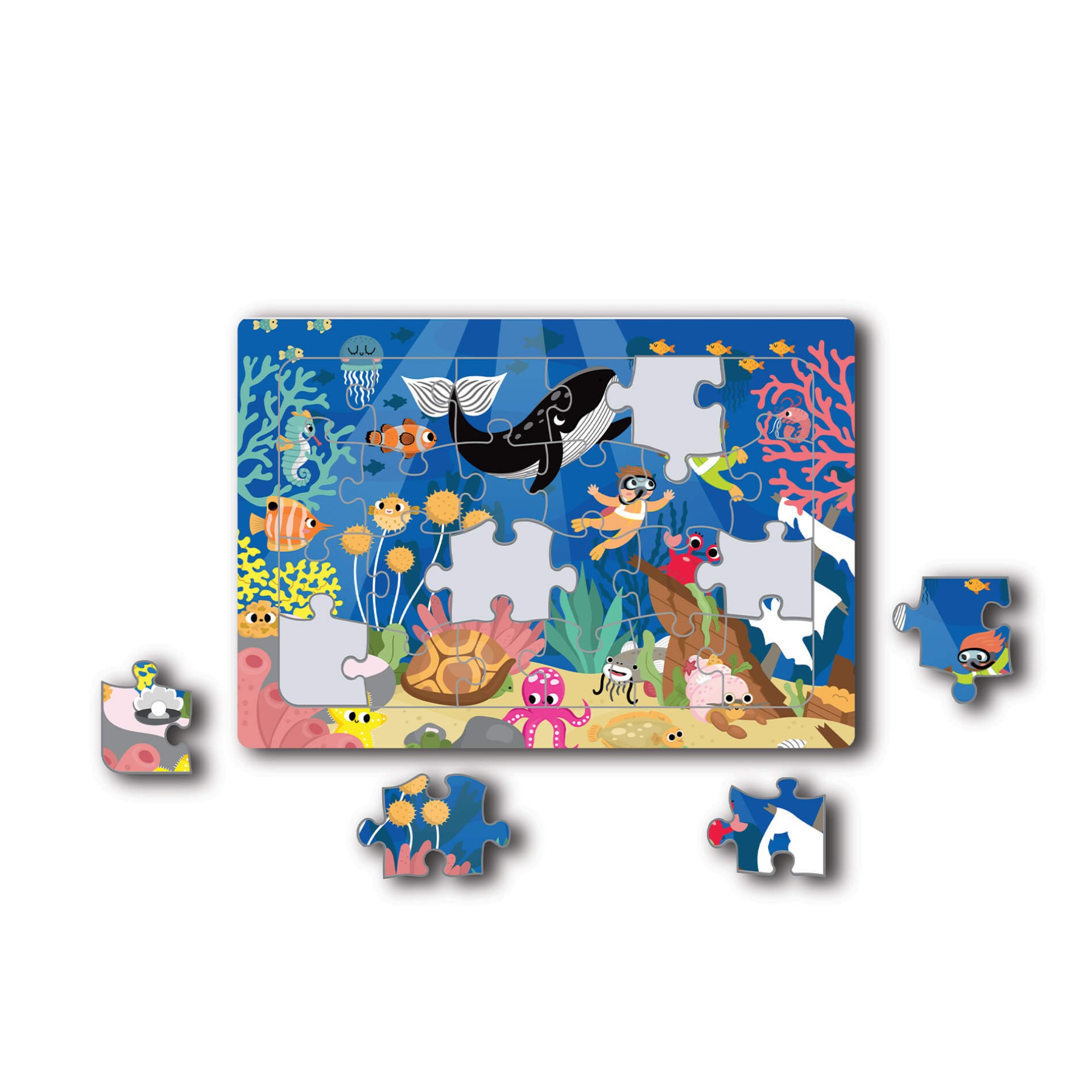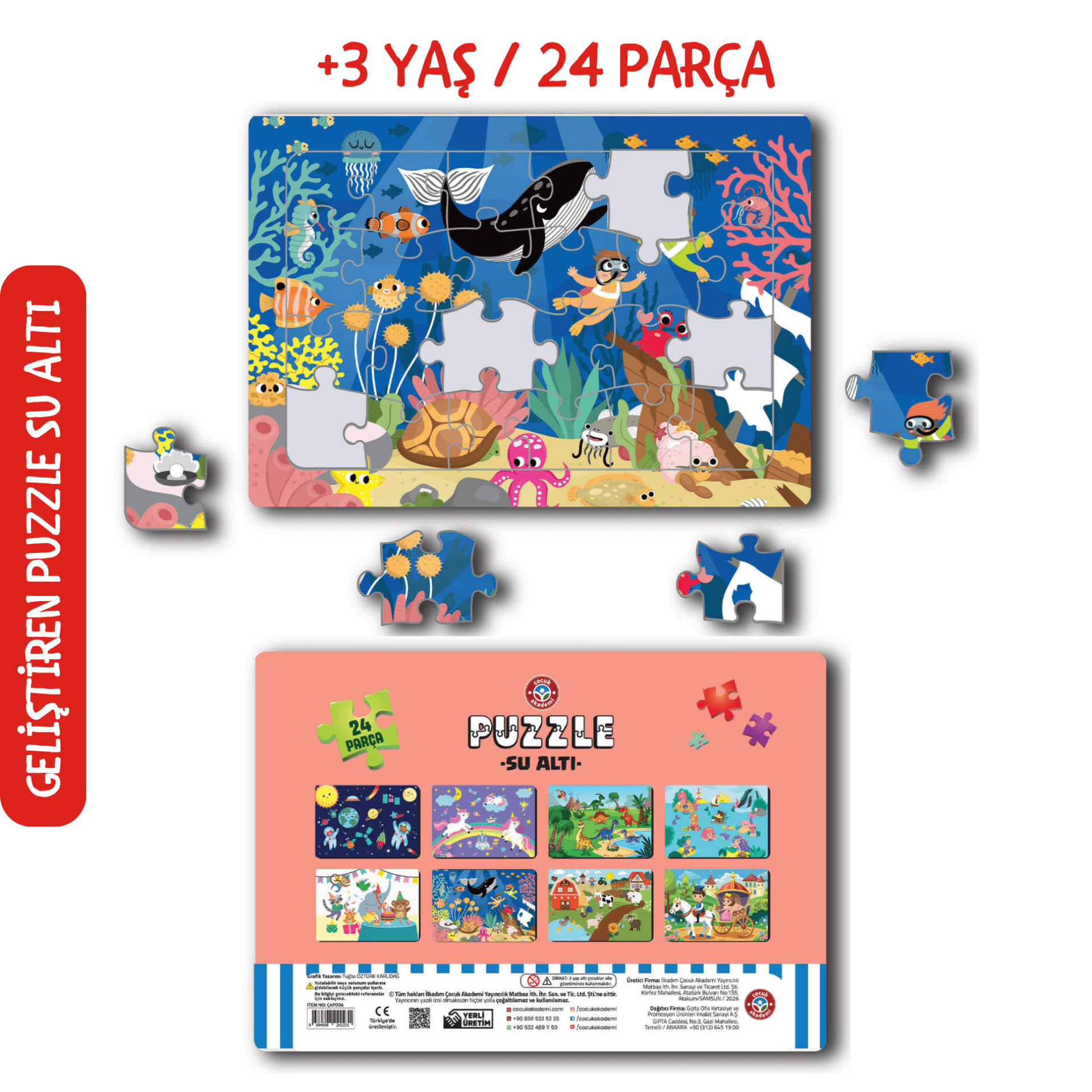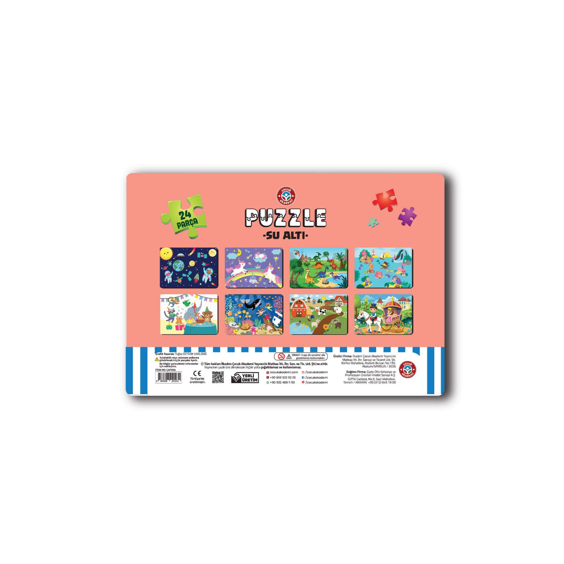 21×30 cm ölçüsündeki bu özel puzzle, çocukların kolayca kavrayabileceği 24 parçadan oluşur. Renkli ve dikkat çekici su altı görseli sayesinde çocuklar oyun oynarken parça birleştirmeyi öğrenir, görsel dikkatlerini geliştirir. Çocuk Akademi Puzzle serisinde 8 farklı çeşitte puzzle bulunmaktadır.