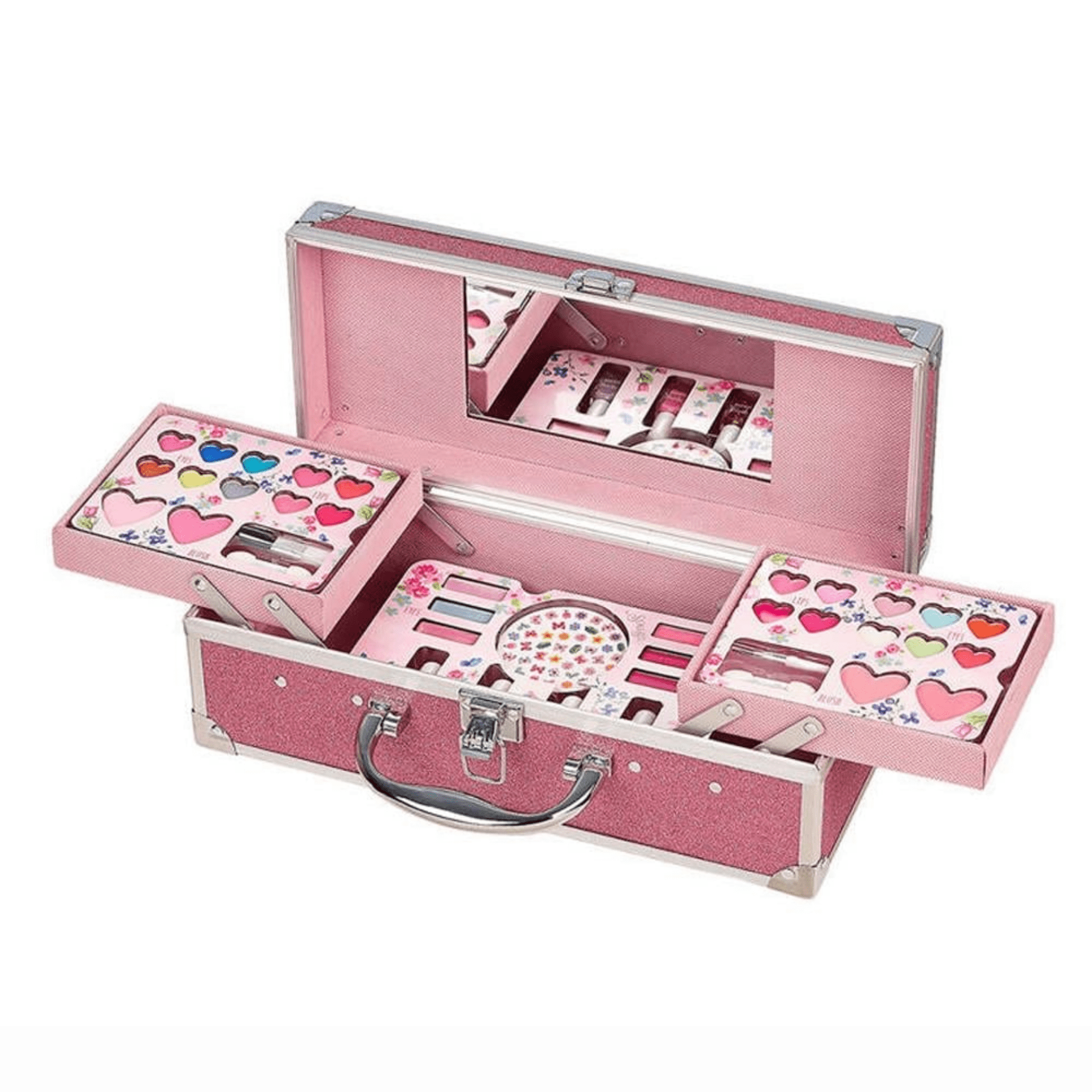 Doğum günü kutlamaları, oyun saatleri ya da küçüklerin kendi güzellik salonunu kurmaları için ideal! İki katlı büyük karton valiz, metal detayları, taşıma sapı ve kilidiyle hem şık hem de pratik.